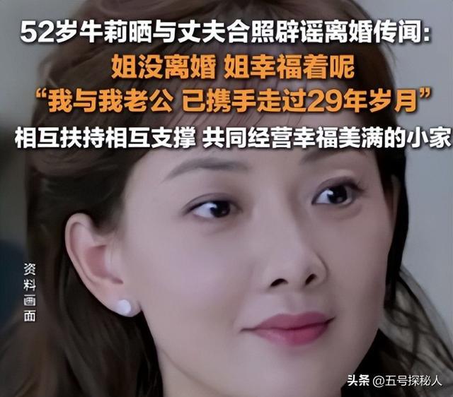 但牛莉第一时间辟谣,晒出与丈夫合影,明确表示与丈夫携手29年,相互扶持。