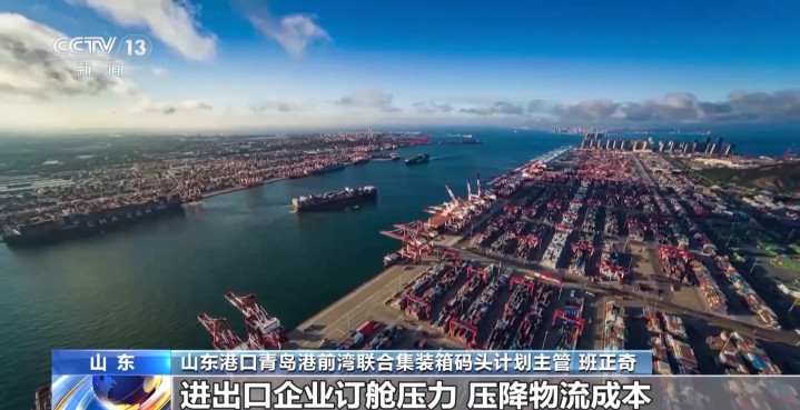山东港口青岛港前湾联合集装箱码头计划主管班正奇:新航线的密集开通将有效缓解进出口企业订舱压力、压降物流成本,稳固跨境供应链韧性。同时也完善了青岛港全球航线布局,为保障产业链供应链稳定高效流通提供通道。